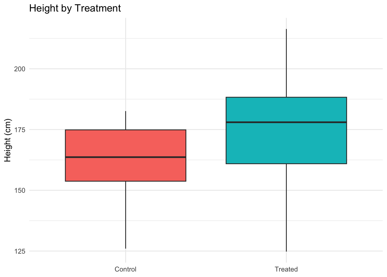 labs(title = "Height by Treatment", y = "Height (cm)", x = NULL) +