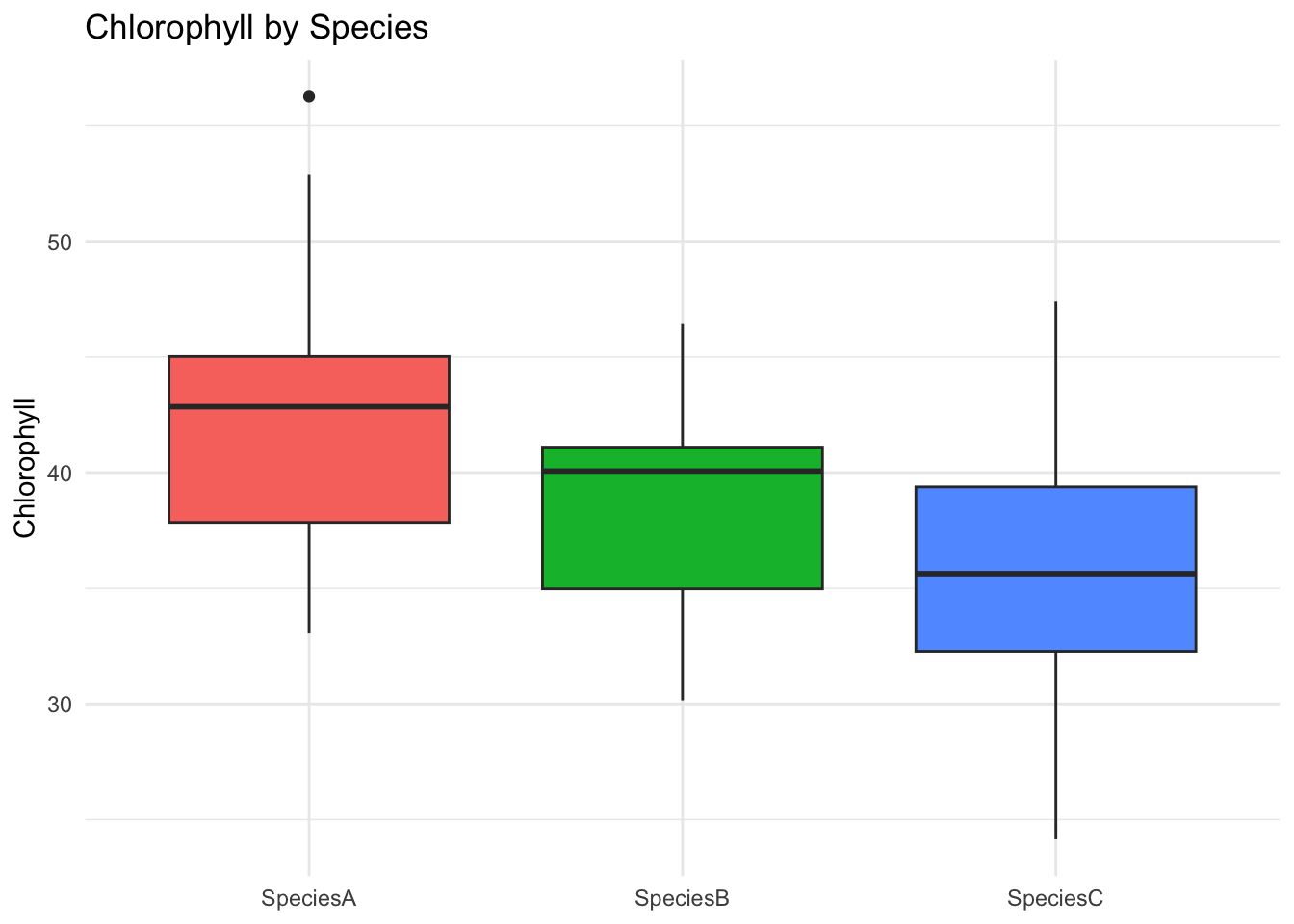 labs(title = "Chlorophyll by Species", y = "Chlorophyll", x = NULL) +
