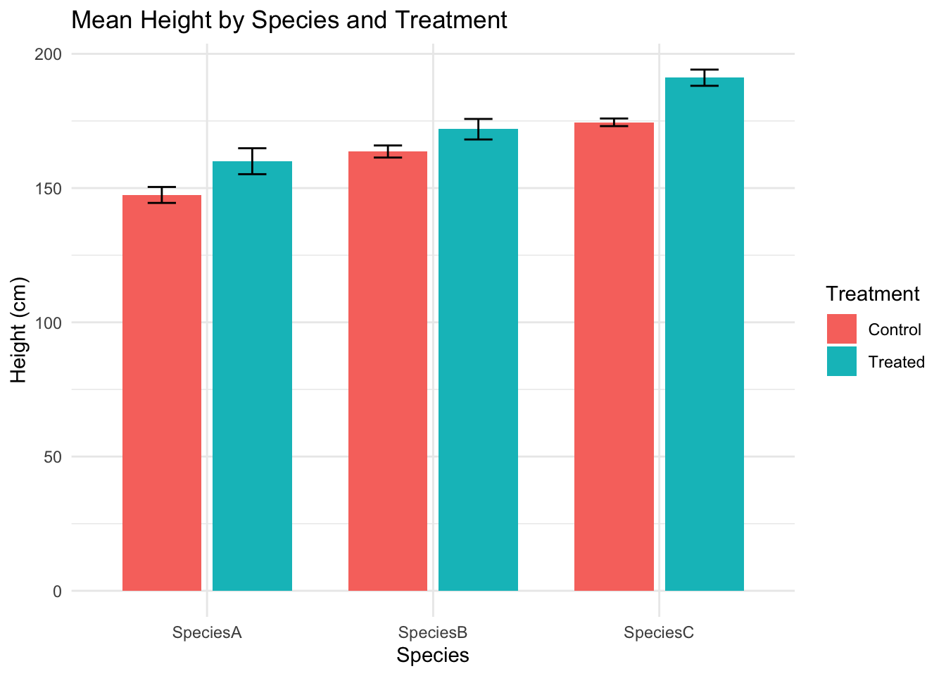 ggplot(df_summary, aes(x = Species, y = mean_height, fill = Treatment)) +